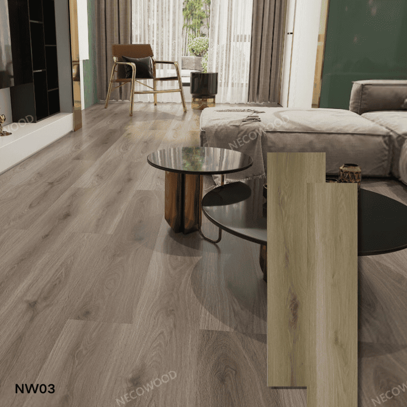Dibuat dengan campuran padat kalsium karbonat dan PVC, lantai Necowood SPC tahan terhadap lalu lintas pejalan kaki yang padat dan tahan terhadap goresan dan keausan.